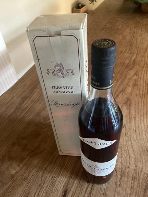Boxed bottle of Chateau de Larressingle Vintage Tres Vieil Armagnac