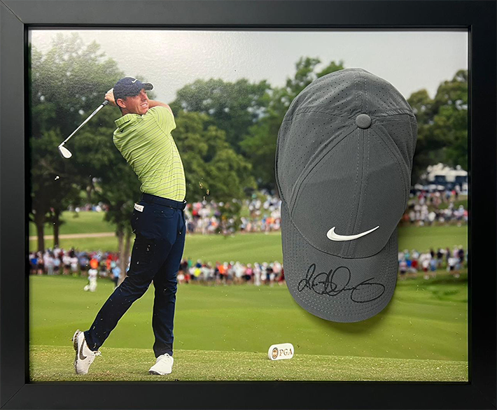 A fantastic cap display signed by five- time major champion and Grand Slam winner Rory McIlroy. His aggressive style of play, combined with his remarkable skills has made him a crowd favourite at tournaments around the world.