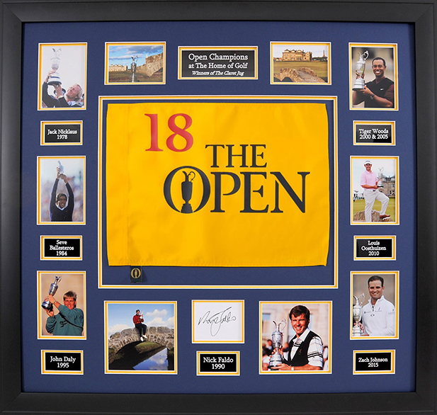 A beautiful display signed by Sir Nick Faldo that represents 7 golf legends that have won the Open at the home of golf St Andrew’s. A truly spectacular display for golf fans.