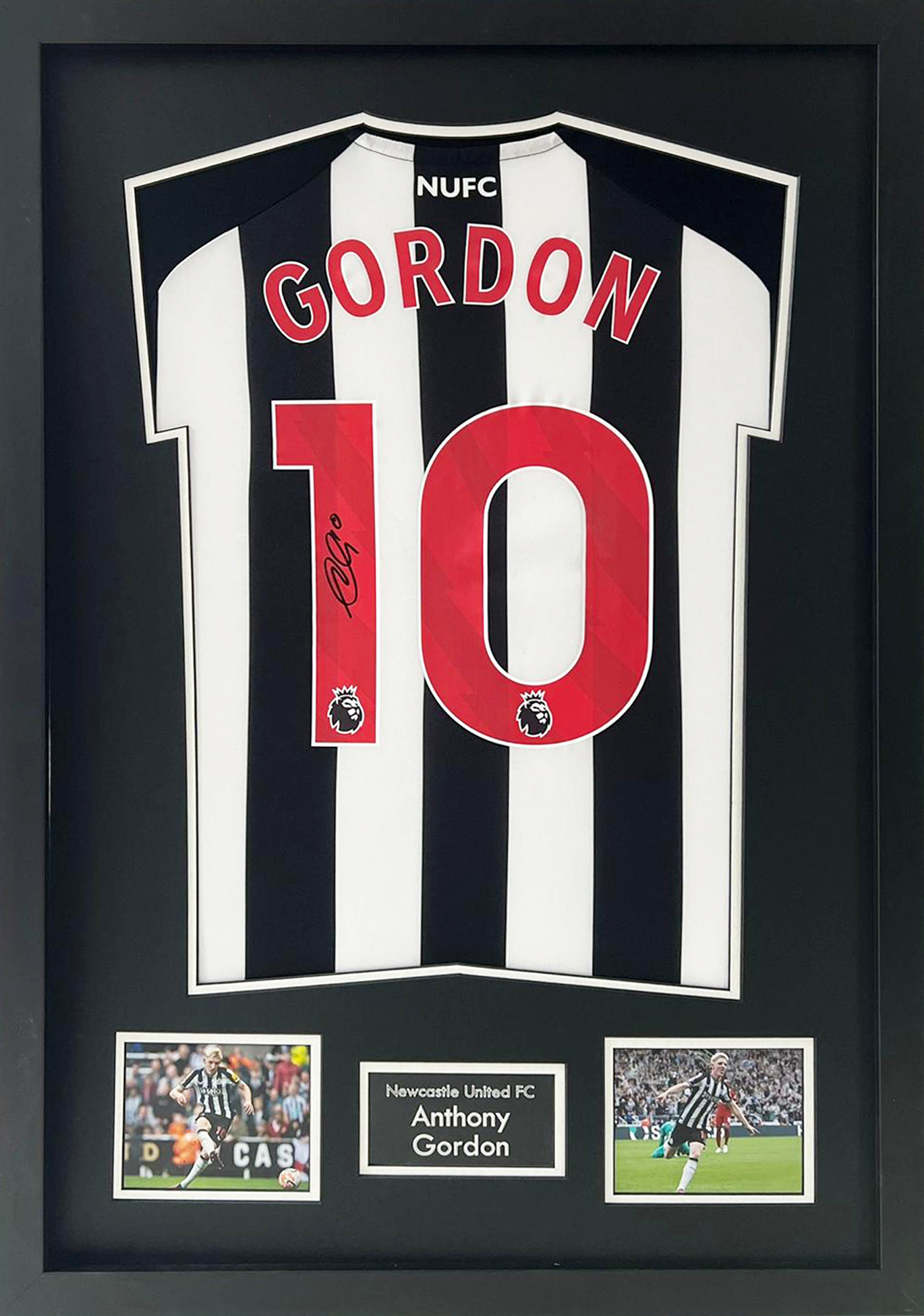 Amazing shirt display signed by Anthony Gordon, an English professional footballer who plays as a winger for Premier League club Newcastle United and the England national team.