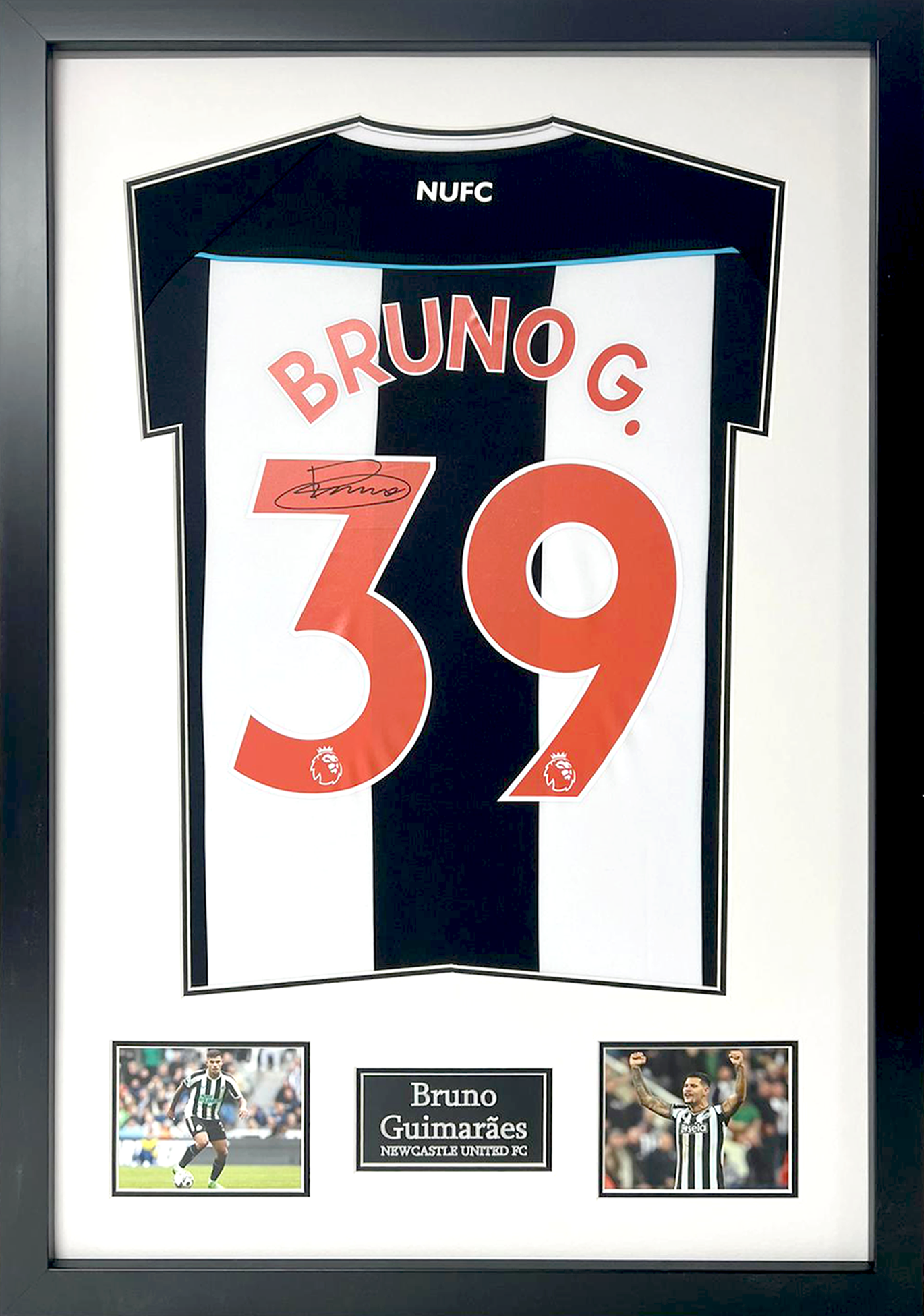 A fantastic Newcastle shirt display signed by Bruno Guimarães.