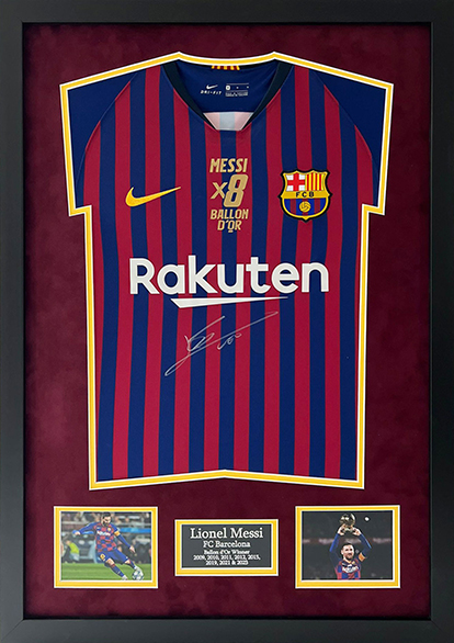 Barcelona shirt signed by the worlds best footballer Lionel Messi.