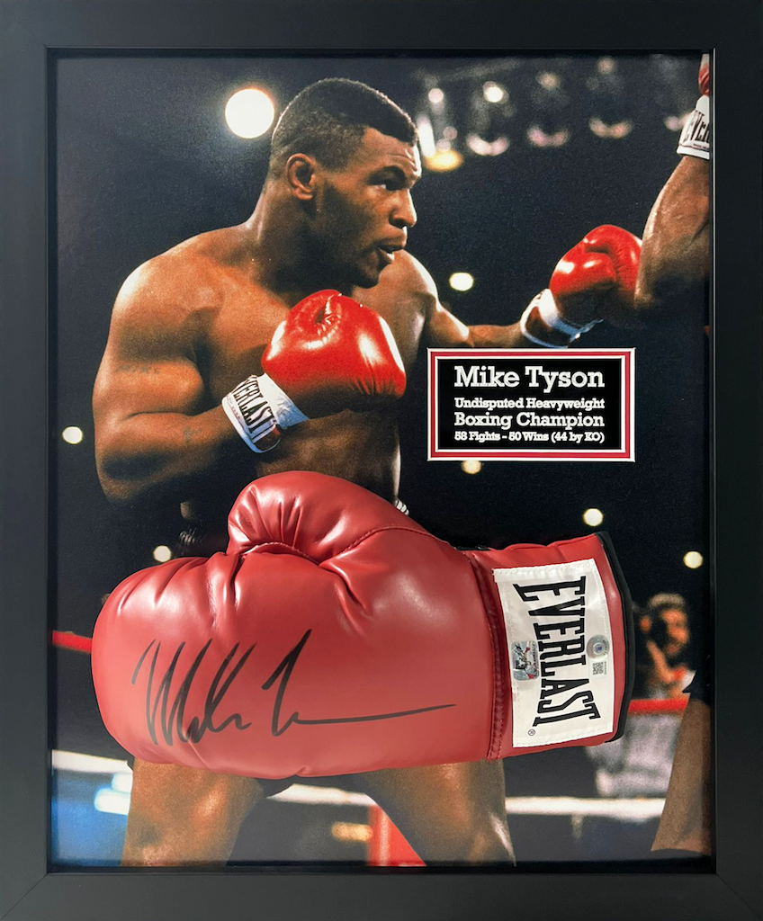 Fantastic signed boxing glove display by “Iron” Mike Tyson.
