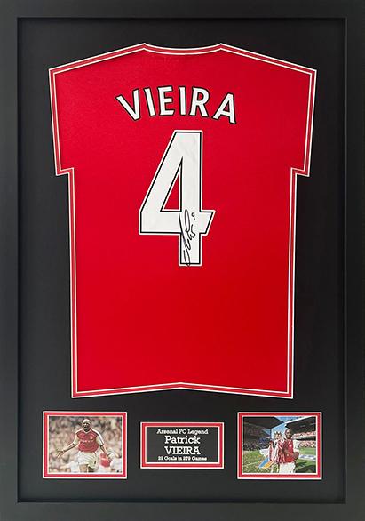 This magnificent Arsenal shirt was personally signed by Gunners legend Patrick Vieira. Don’t miss your chance to own the rare signature of this Arsenal hero, one of the greatest midfielders ever to play for the club.