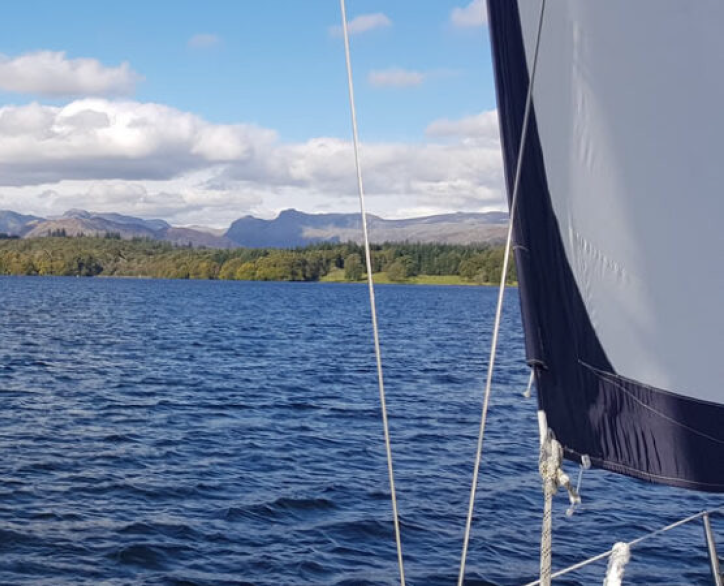 After a tour of Bowness Bay we will hoist the sails and enjoy the peace and quiet as we explore Windermere. Sit back, relax and enjoy the amazing scenery or get completely involved with trimming the sails and helming the ocean going yacht. After 90 minutes, we will drop the sails, find a quiet spot in one of Windermere’s many bays, relax and enjoy a very extensive, locally sourced ploughman’s meal. A selection of beers, gin & tonic, speciality wines, prosecco and champagne can be purchased from our on board bar. We finish with tea or coffee and homemade cake, as we motor back to the marina.