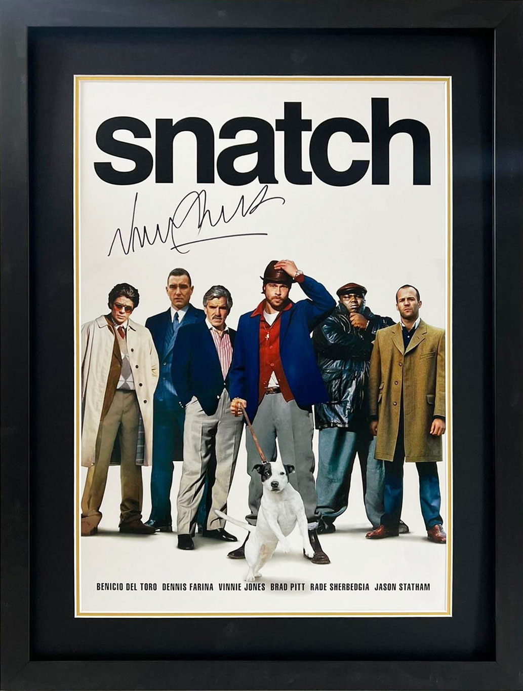 Wonderful Snatch display, signed by Vinnie Jones as Bullet Tooth Tony. Snatch is a 2000 British-American crime comedy film written and directed by Guy Ritchie, featuring an ensemble cast.