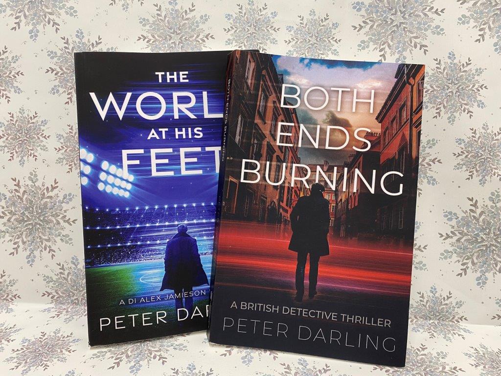 Both Ends Burning and The World at his Feet books - signed by the author Peter Darling