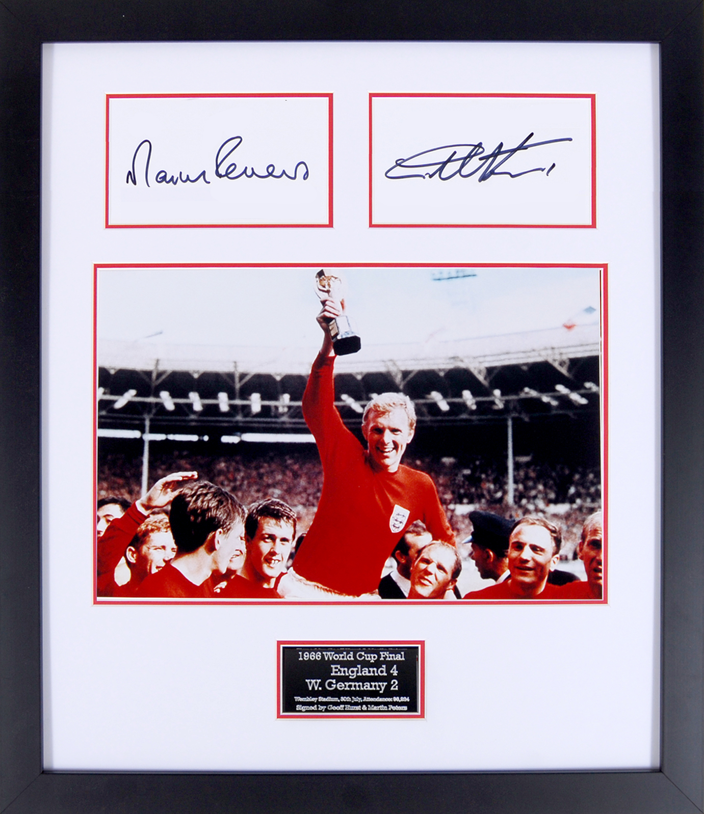 Signed by the two goal scorers of England’s winning 1966 FIFA World Cup Final, Sir Geoff Hurst and Martin Peters.