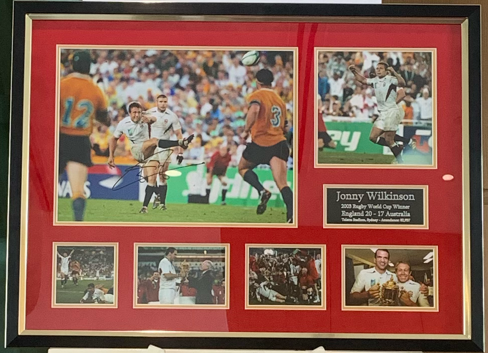 Jonny Wilkinson, arguably one of the world's greatest ever rugby players and an England Rugby World Cup winning hero is represented in this stunning signed display. A rare piece of memorabilia.