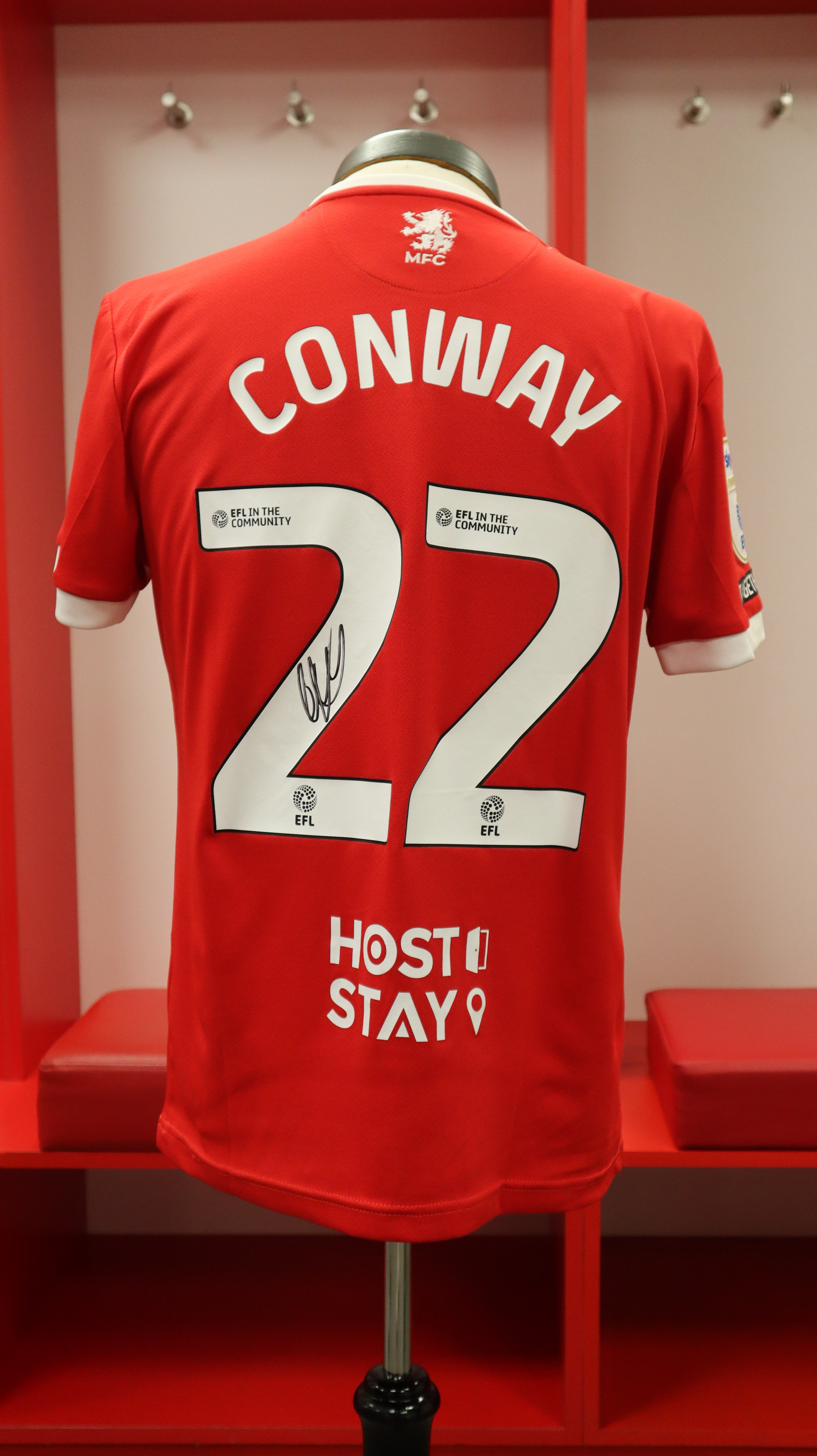 Tommy Conway match worn and signed shirt from the Middlesbrough v Hull City game on 30 November 2024