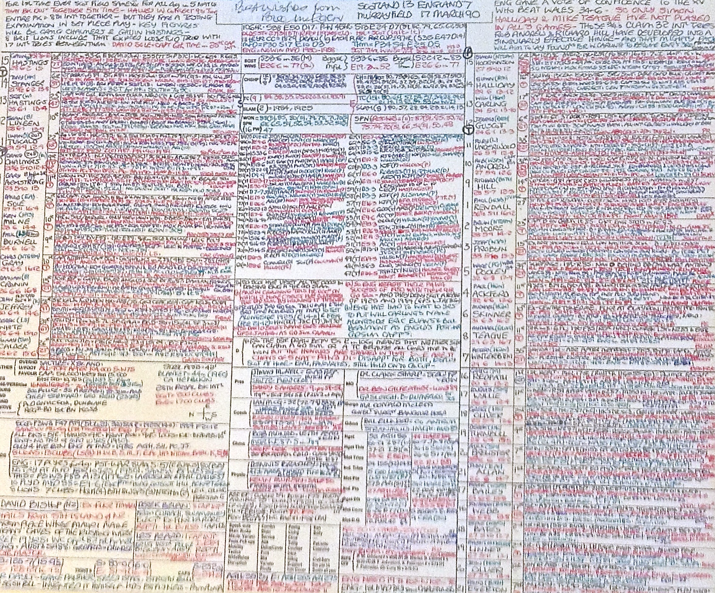 Both teams were playing for the Grand Slam with England the favourites. However, that wasn't to be as Scotland dominated the match and deserved their victory. Tony Stanger past pupil of Bill McLaren's scored the famous match winning try chasing a high kick from Gavin Hastings and beating Rory Underwood to the ball.