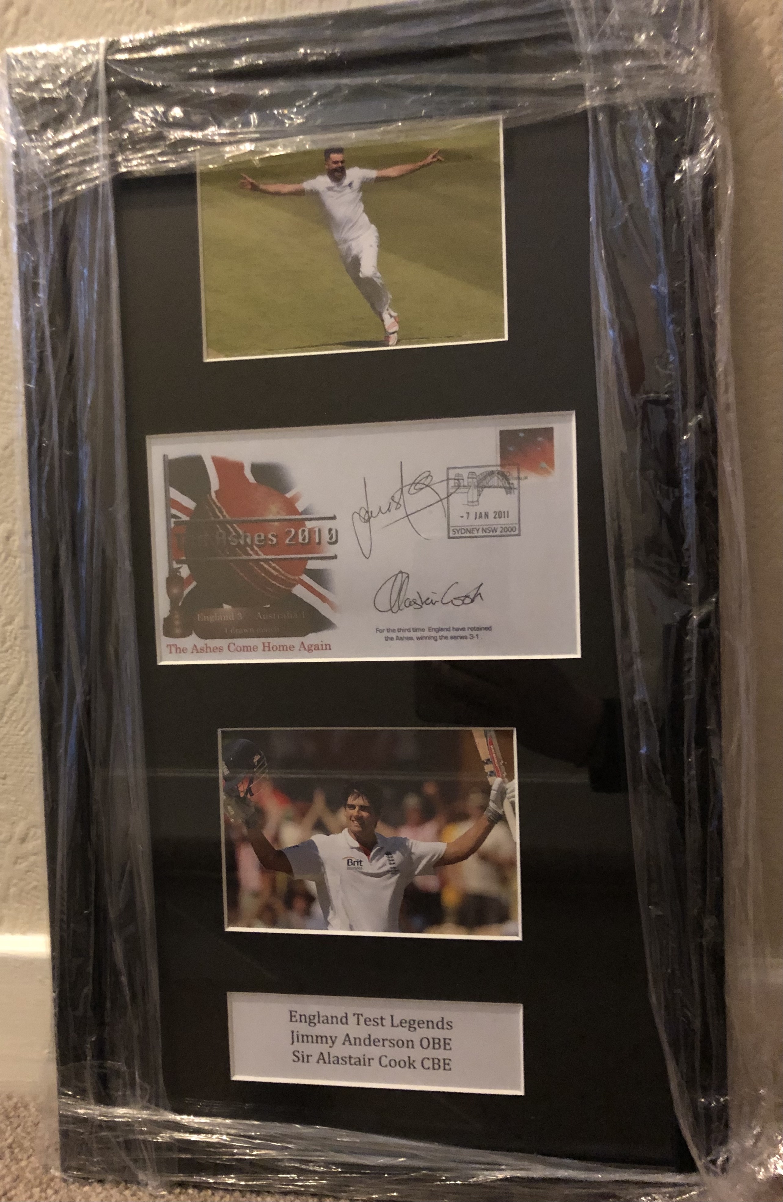 Two legends of this series and England Cricket - Alastair Cook CBE and Jimmy Anderson OBE - have both signed this incredible piece of cricketing history.