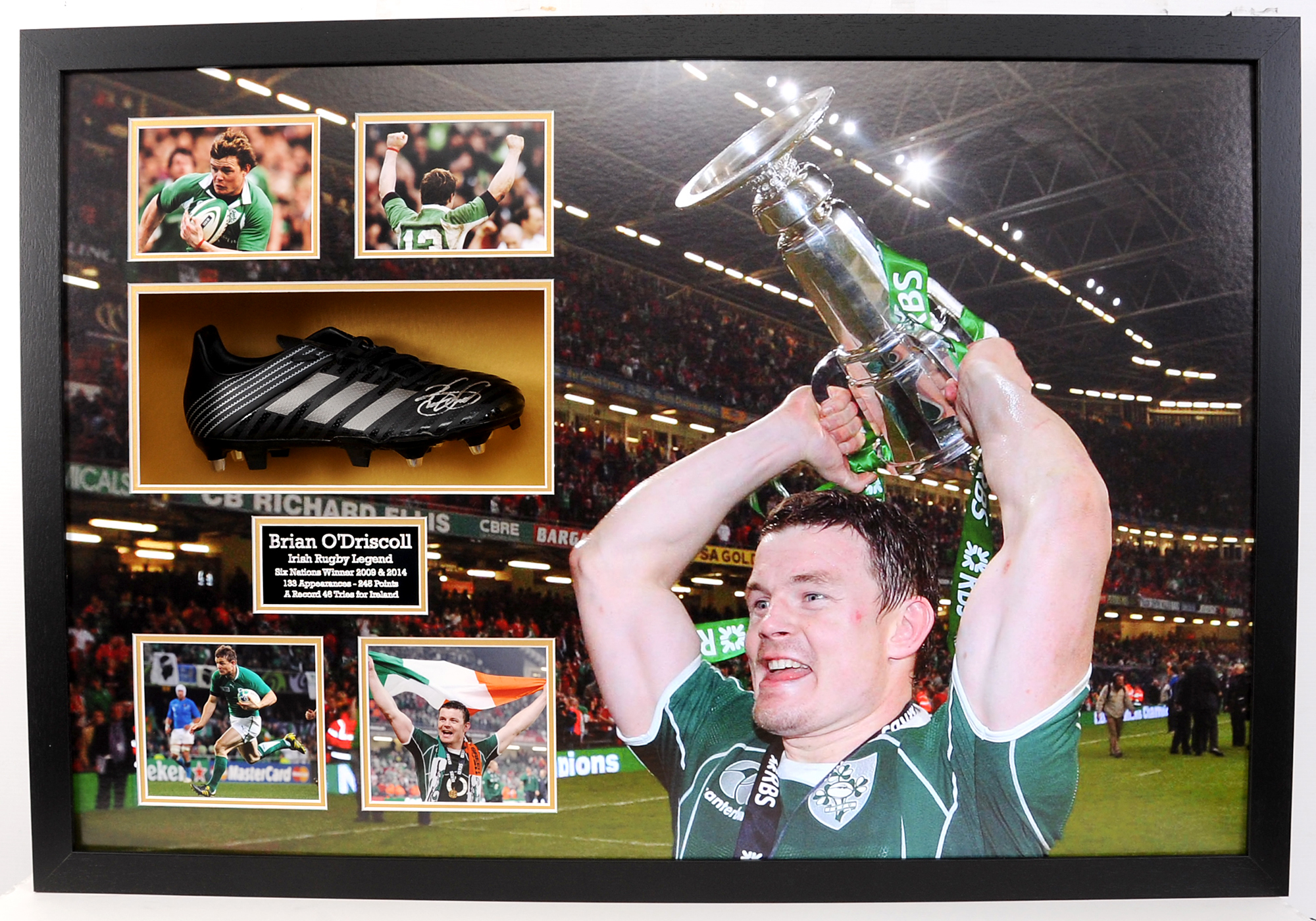 Superb signed boot display from Irish and British Lions legend, Brian O'Driscoll.
