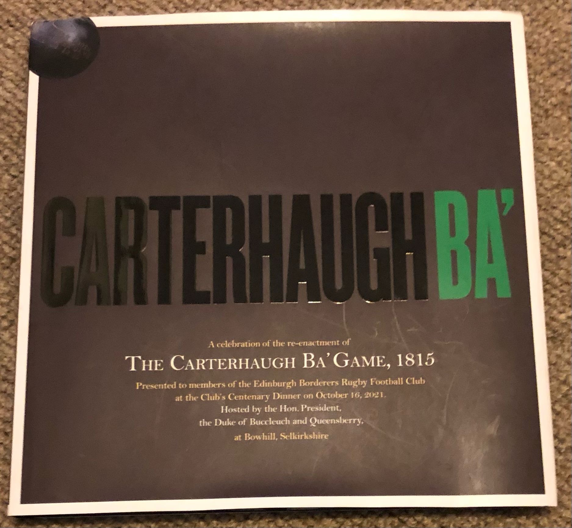 A new book called Caterhaugh Ba' suggests that it may well have been from the mass handba’ games of the Scottish Borders - still very much alive and kicking - that the handling game first evolved or from what may well be considered to be Britain’s first ever mass participation sports event which took place at Carterhaugh a decade before what happened or didn’t happen on the playing field at Rugby School. The book tells of the parts played by Charles, 4th Duke of Buccleuch, Sir Walter Scott and James Hogg, the Ettrick Shepherd that faroff December afternoon at the confluence of the Ettrick and Yarrow. Beautiful hard backed book and good read.
