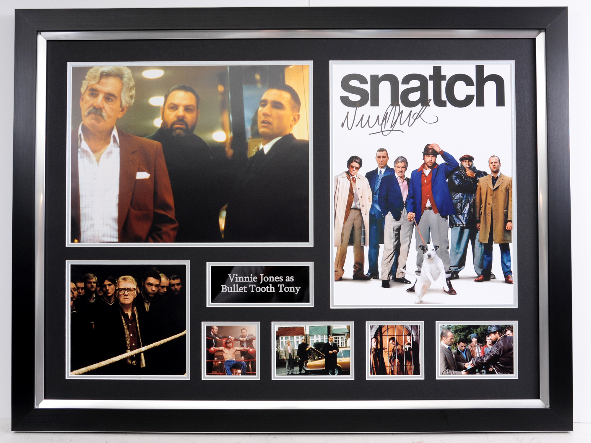 Wonderful Snatch display, signed by Vinnie Jones as Bullet Tooth Tony.Snatch is a 2000 British- American crime comedy film written and directed by Guy Ritchie, featuring an ensemble cast.