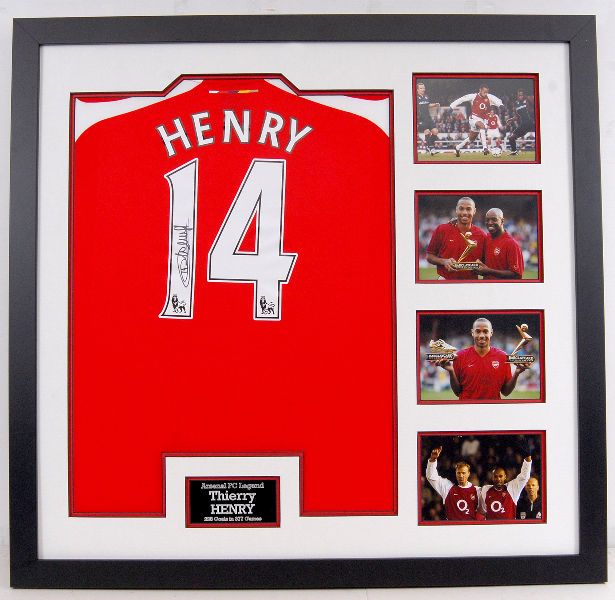 This magnificent Arsenal shirt was personally signed by Gunners legend Thierry Henry. Don’t miss your chance to own the rare signature of this Arsenal hero, one of the greatest strikers ever to play for the club.