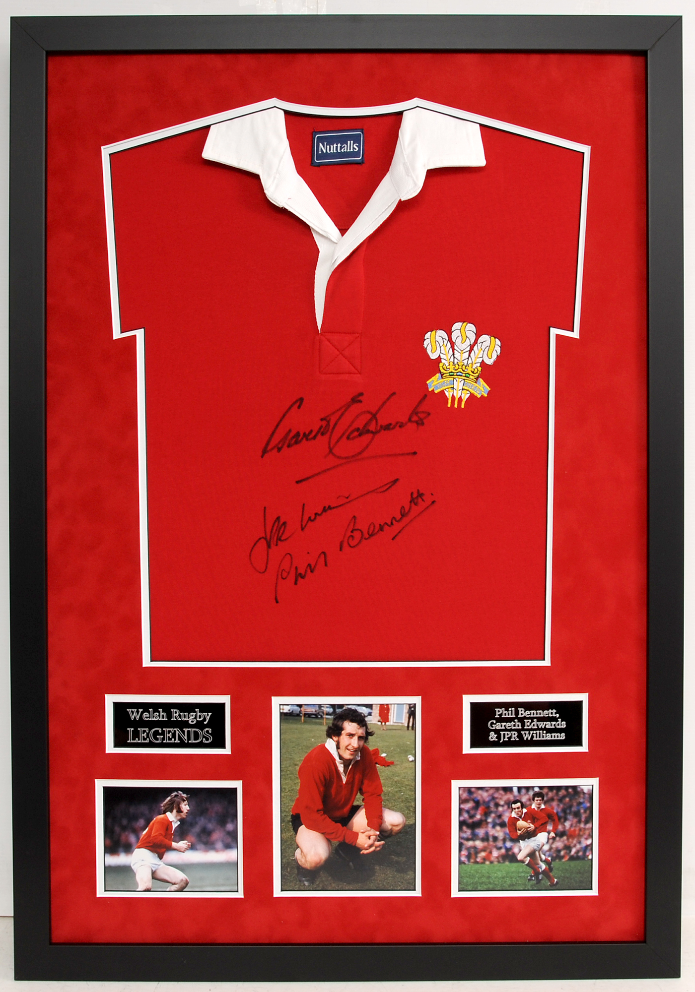 A classic Welsh shirt signed by some of the most memorable players: Gareth Edwards, JPR Williams and Phil Bennett.
