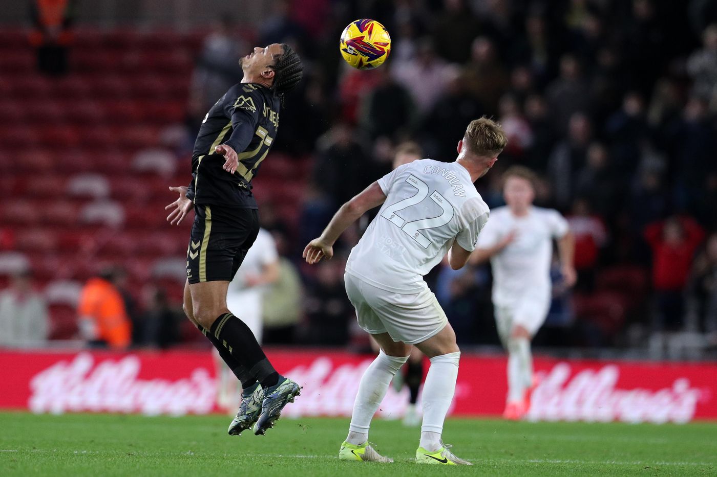 Tommy Conway No More Red shirt worn in the Middlesbrough v Coventry game on Saturday 2 November 2024.