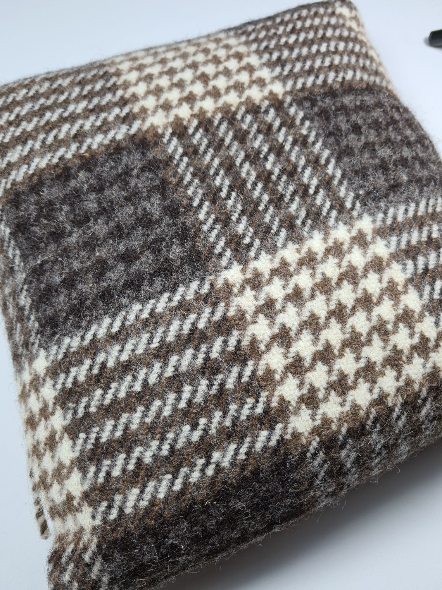 Traditional Shetland scatter cushion, woven and hand stitched in Yorkshire. 100% Real Shetland Wool casing and filling and a pure Cotton inner case. Approximately 15" x 15" in size.