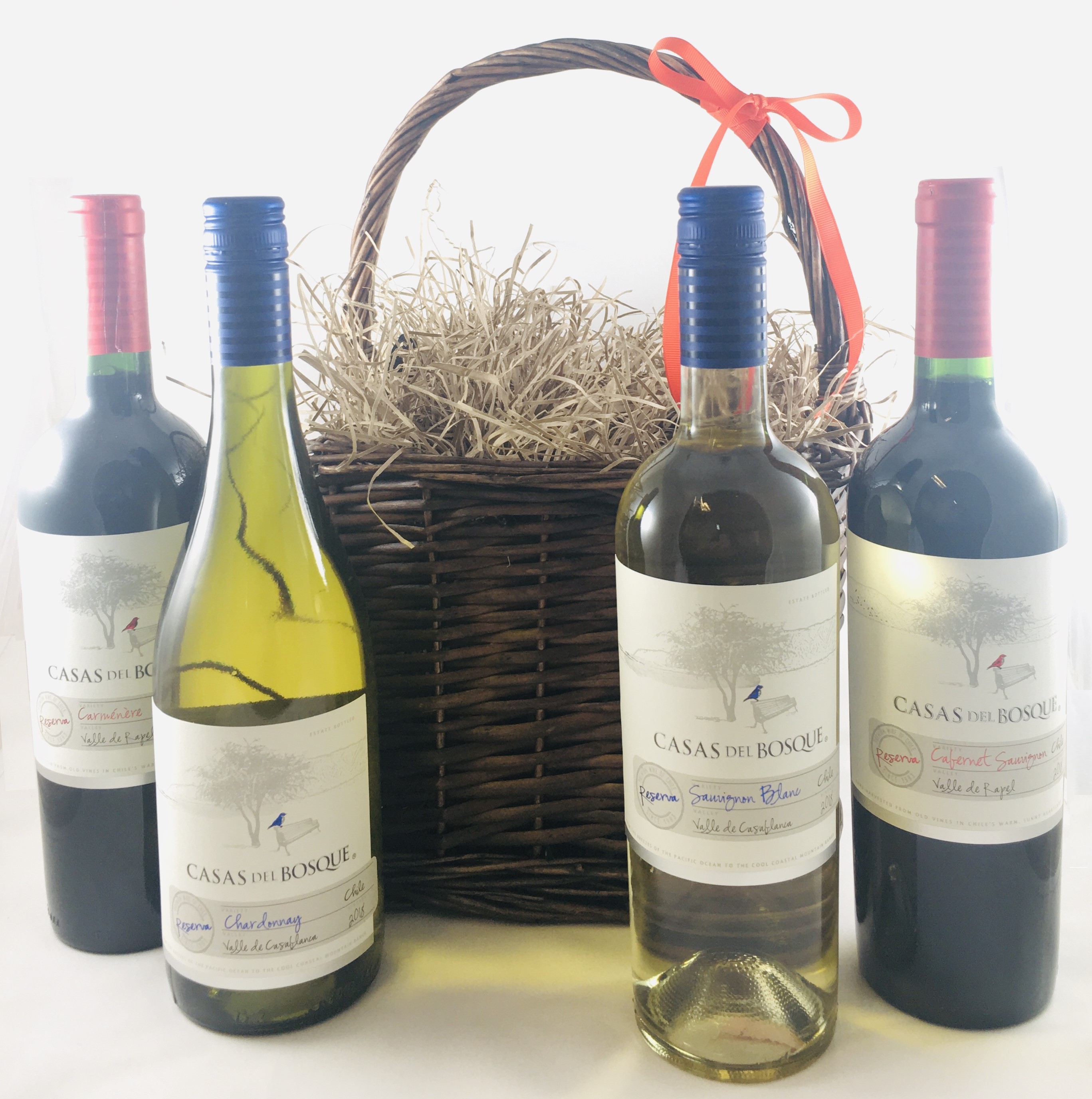 A wonderful example of New World wines from the produces of Casas del Bosque in Chile (2 white 2 red) 1 x Sauvignon Blanc - The nose is fruity with lime and guava, with just a hint of white pepper leading to a palate that is fresh with citrus and a mineral backbone. Excellent structure and length. 1 x Chardonnay - Aromas of quince and green plums combined with roasted walnuts and flint. The palate is medium-bodied, complex, fresh and with a long finish - a sign of quality. 1 x Carmenere - Chile's signature grape, the nose exhibits heady notes of raspberry, cedar and a slight smoky quality with just a hint of fresh lavender. The mouth an is full of red cherry and blackberries, sweet tobacco and cinnamon. Ripe tannins and fresh acidity combine to give good balance and length. 1 x Cabernet Sauvignon - Aromas of redcurrant, dark plum and bramble which lead onto the palate which has additional flavours of black cherry, cinnamon and espresso bean. Rich and brooding yet elegant tannins impart fine structure and a long finish.