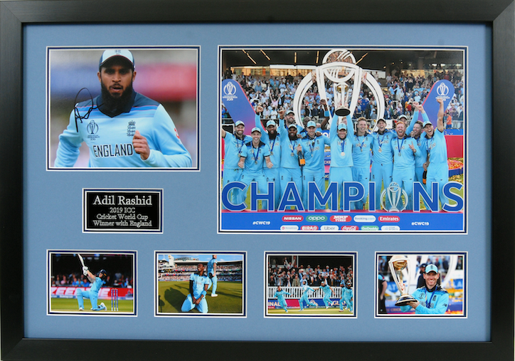 Fantastic display, signed by Adil Rashid who was a part of the World Cup winning team.